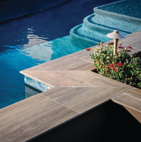 Two installation needs, a single solution. UNICO, size 12.99″ x 23.54″ x 3/4″, is a versatile porcelain unit is processed on both sides to give you maximum flexibility and design freedom. Unico can be used as a step and as a coping for swimming pools. With a rounded, bullnose edge or straight edge, this uniquely functional border piece looks great from every angle.