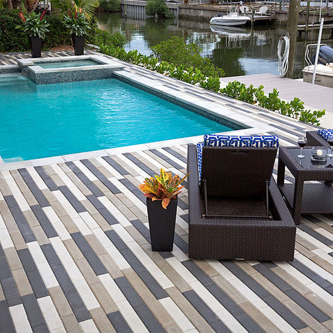 Rethinking traditional brick pavers, Plank pavers provide a simple yet bold statement with grand proportions perfect for driveways and patios. Plank pavers are available in a variety of 9 solid colors which offer effortless design options to complement any setting. Available in 2 ⅜" thickness, ideal for residential patios and pool decks; as well as the 4" thick pavers which can withstand the heavy payloads of driveways and commercial installations.